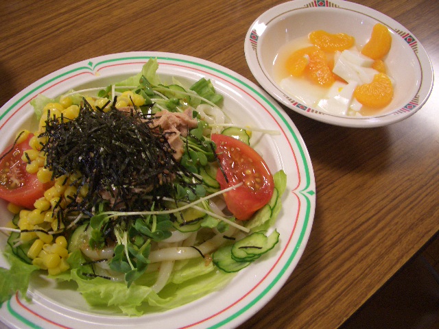 今回は前回ブログとは別のサラダうどんです。出来栄えは甲乙つげ難いですが