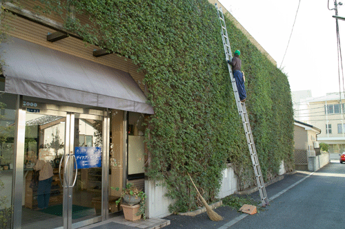 建物を遮ってくれています。今日、造園屋さんが今年最後の剪定を