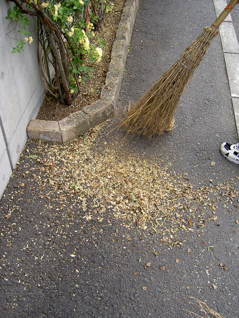 溜まってます。竹箒で掃き集めようものならまるで