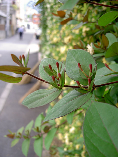 に植わっているスイカズラが花を咲かせる準備を