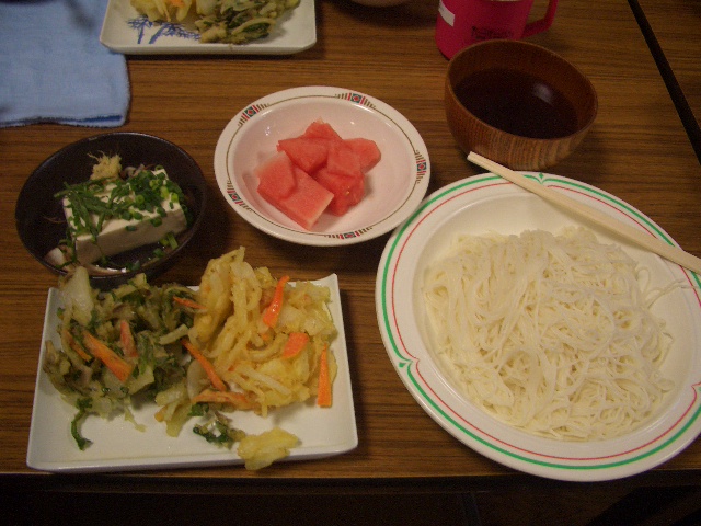 水曜日*若葉の会* かき揚げ・そうめん・スイカデザート