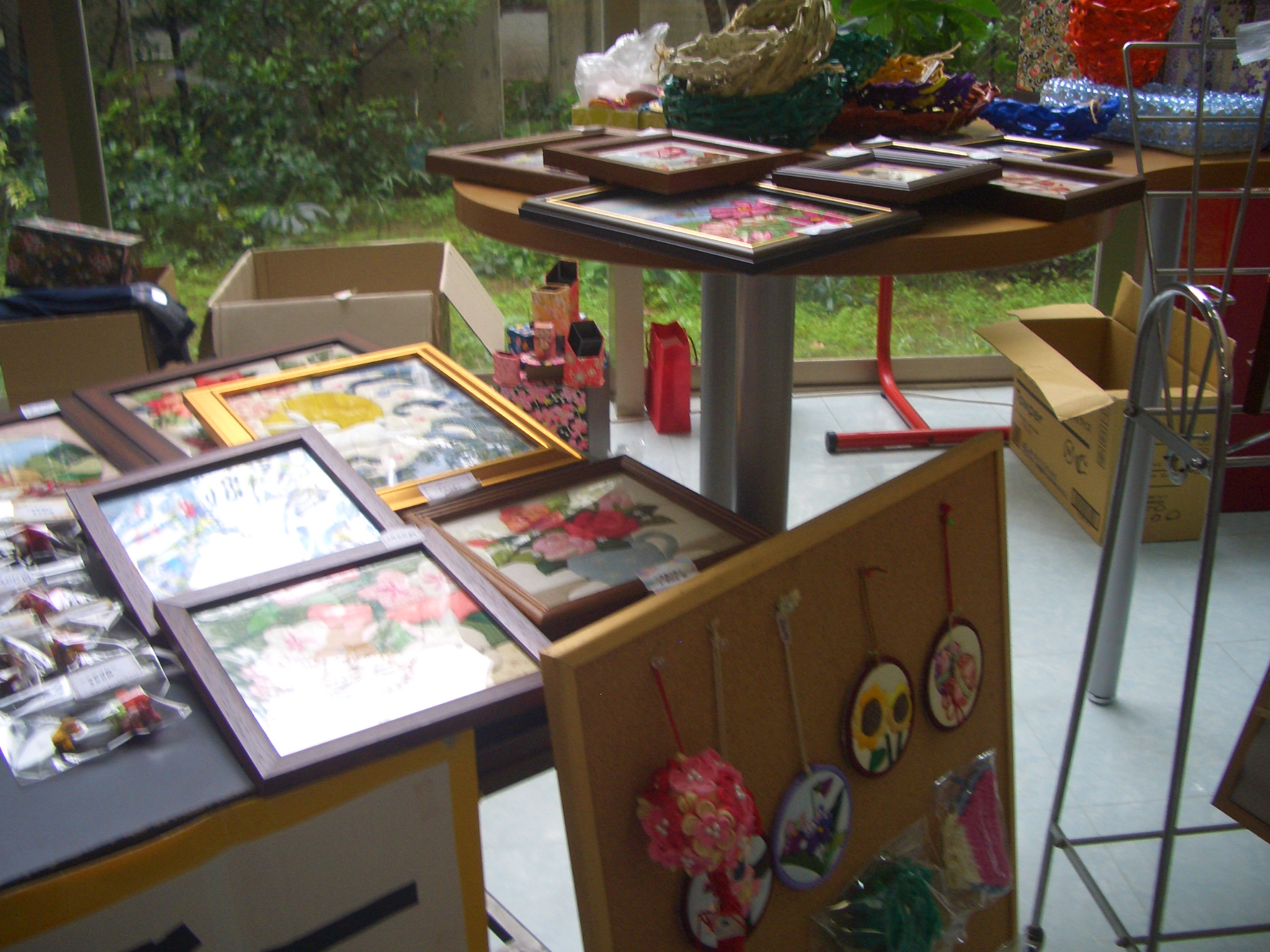 1年かけてメンバーが作った木目込みや刺繍糸の絵