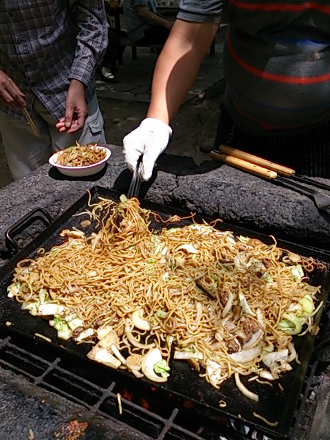 を作る頃に少し雨がパラついてきてしまいました。(T)さんが焼きそばを作っ