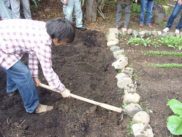 昨日の雨で土もやわらかくなっており、草むしりをして少し耕してか