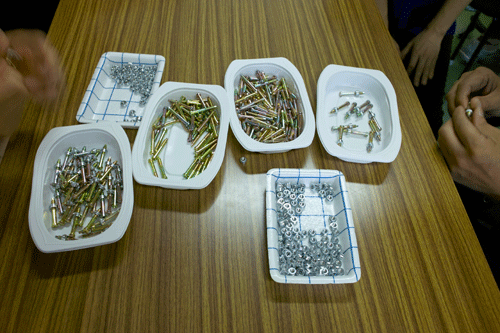 今もらってやっている作業はねじのボルトにナットをはめていくもので