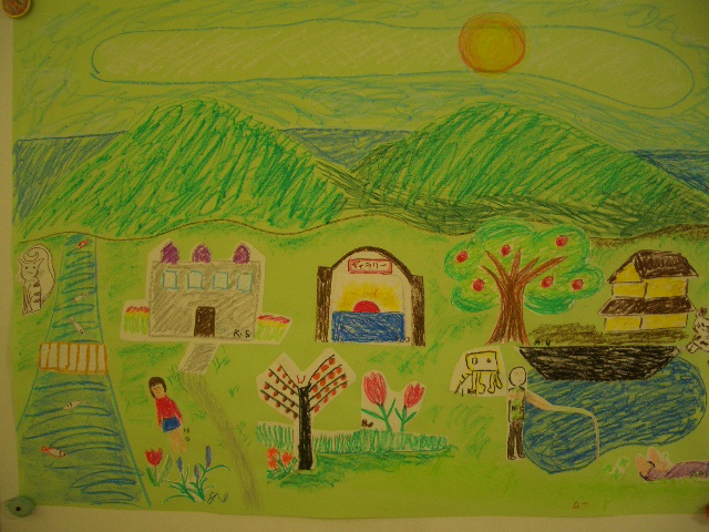 今回は<私の住みたいところ>をテーマに協同画を作成しました。