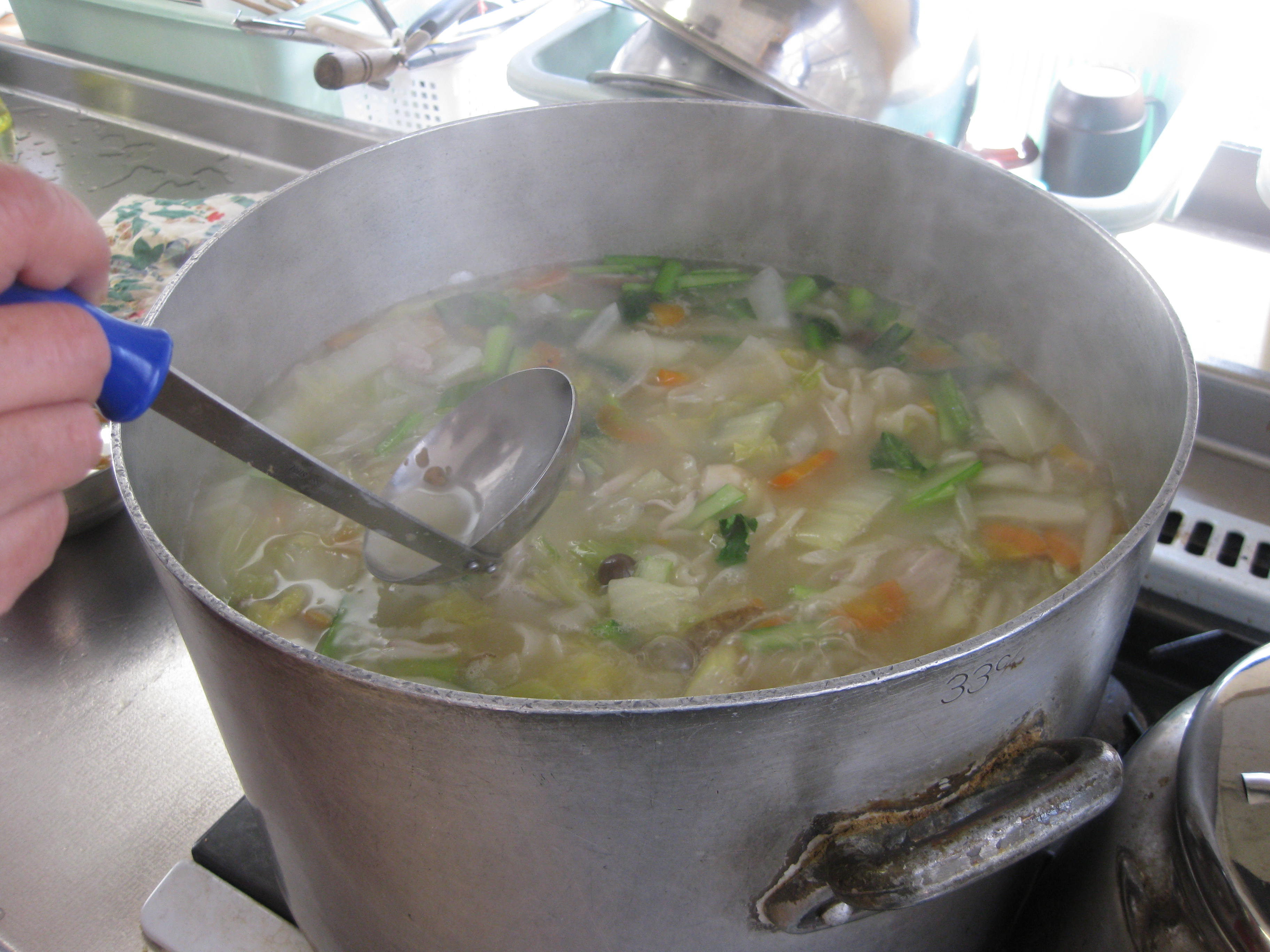 どんぶりいっぱいに具沢山ほうとうが盛り付けられ、みなさん目を輝かせていました。