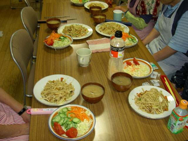 できる料理を作ってみんなで夕飯を食べるプログラムです。