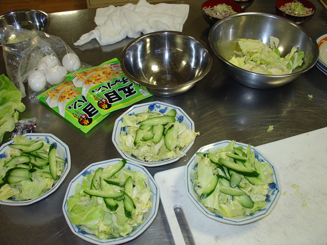 作っている最中に、給食を食べる人たちの配膳がはじまり、やがて