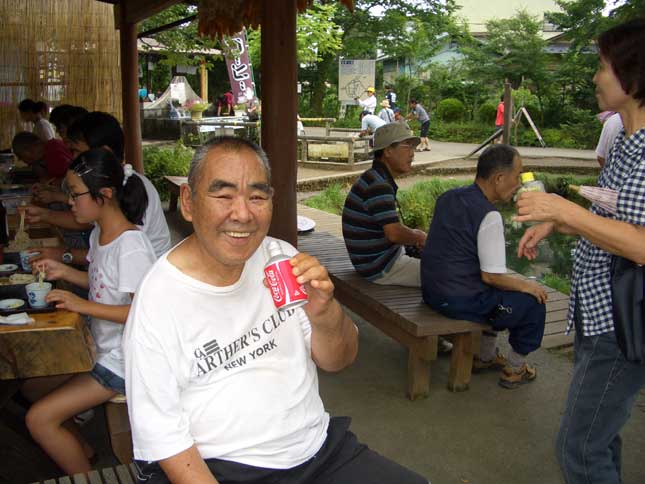 店に着きクルマを降りると、みんなは「さてまず一服」とジュース