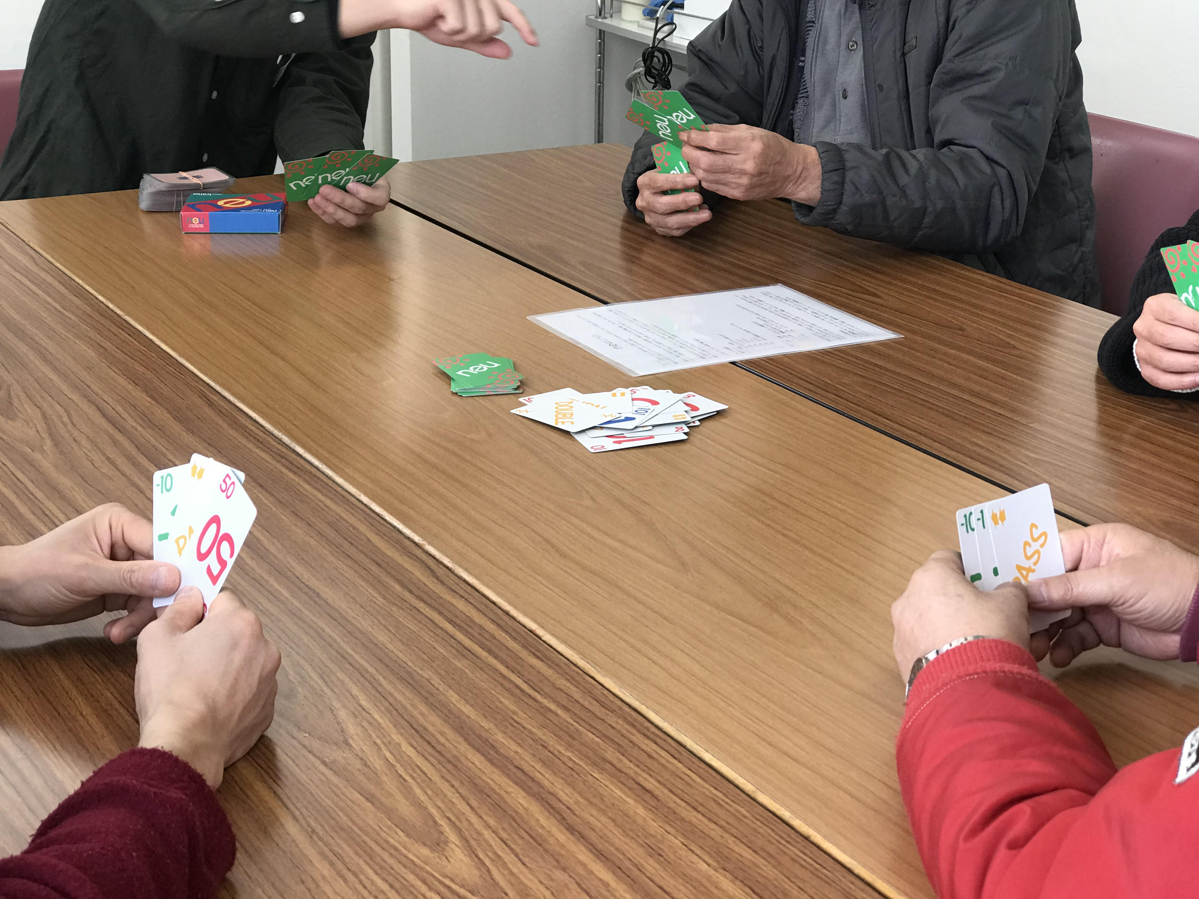 ぱっぱっとカードをどんどん出す人、じっくり考える戦略家、負けて悔しがる人、はじめてのゲームでしたがワイワイ言い合ったり感情の発散になっていつも楽しい時間です。