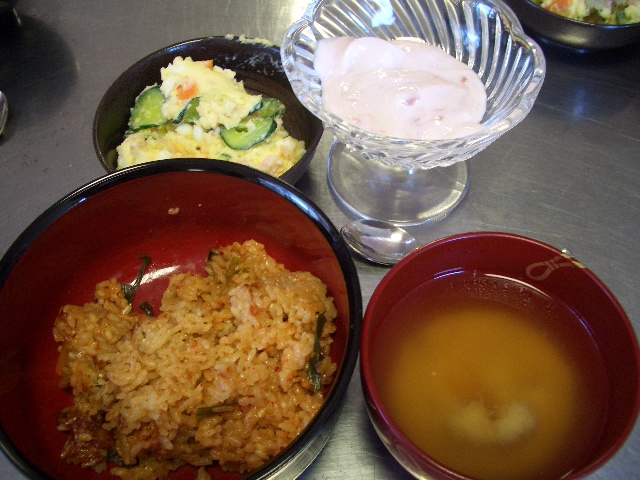 キムチ色になってましたしおこげもついてました。盛り付けを