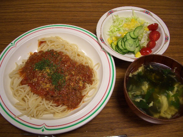 味しいミートソーススパゲティでした^^サラダも