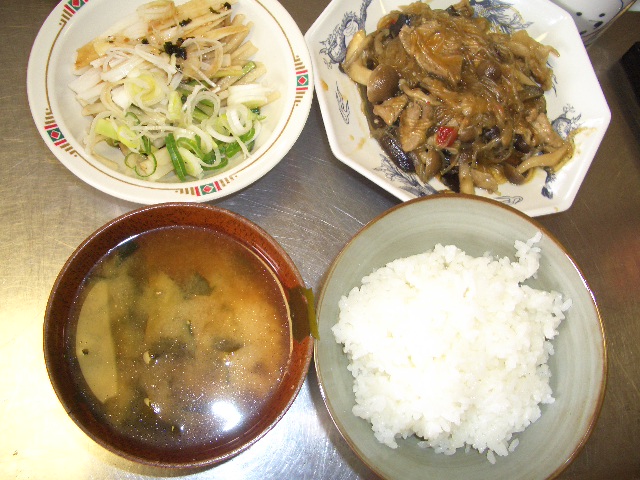 いような気も・・・。しかし炒めたお肉に茄子にしめじを入れて