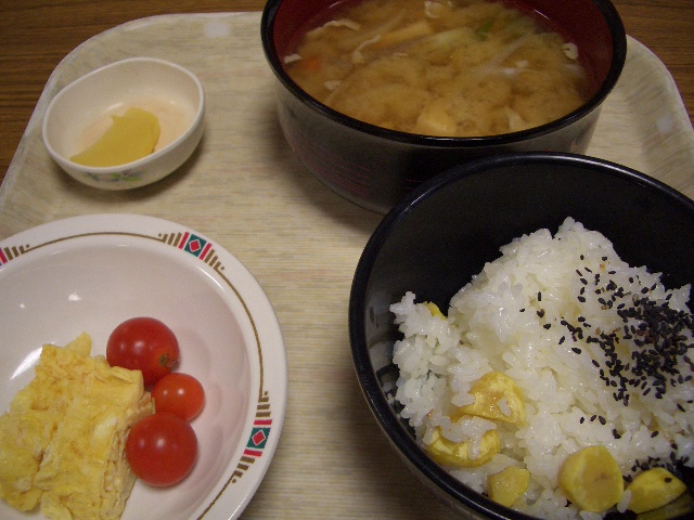 キングです。今日は秋の旬で栗ご飯と豚汁がメインになってました。