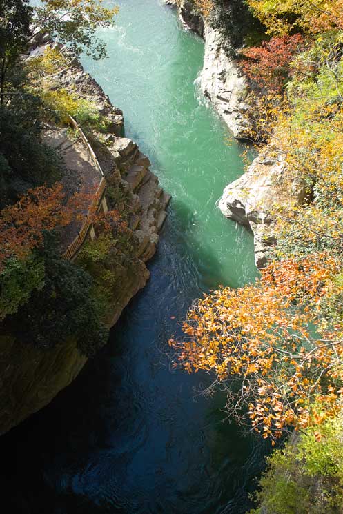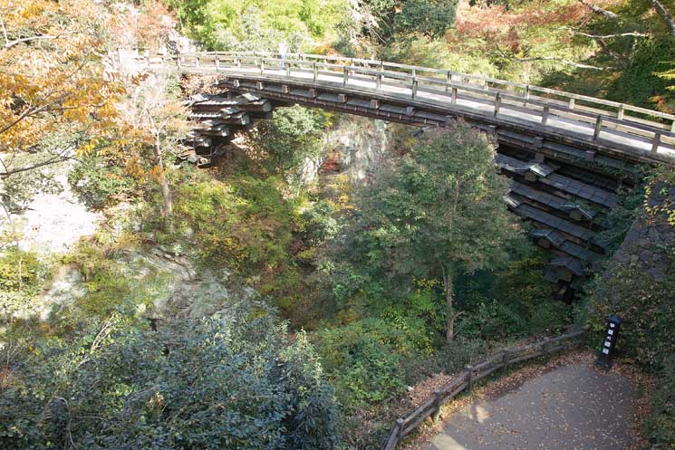 憎、猿橋の紅葉はまだ青くて、見頃には少し早か