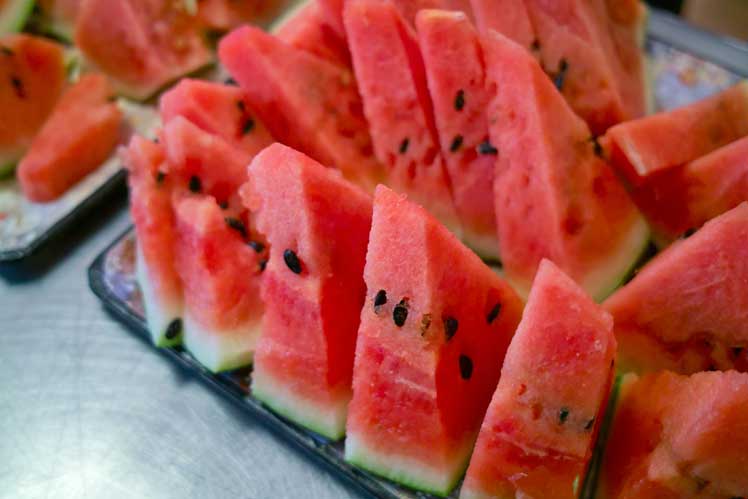 熟したスイカが切られてきれいに並べられているではありません